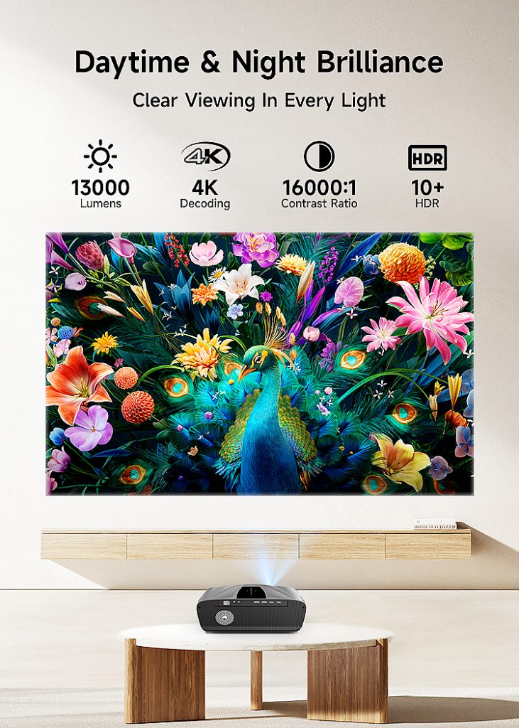 This brightness level is ideal for home theater setups. Even in more open spaces or environments with higher ambient light, A9K provides excellent picture quality. High brightness means you can choose your projection area freely without worrying about light interference, a limitation common in traditional projectors with lower brightness.
