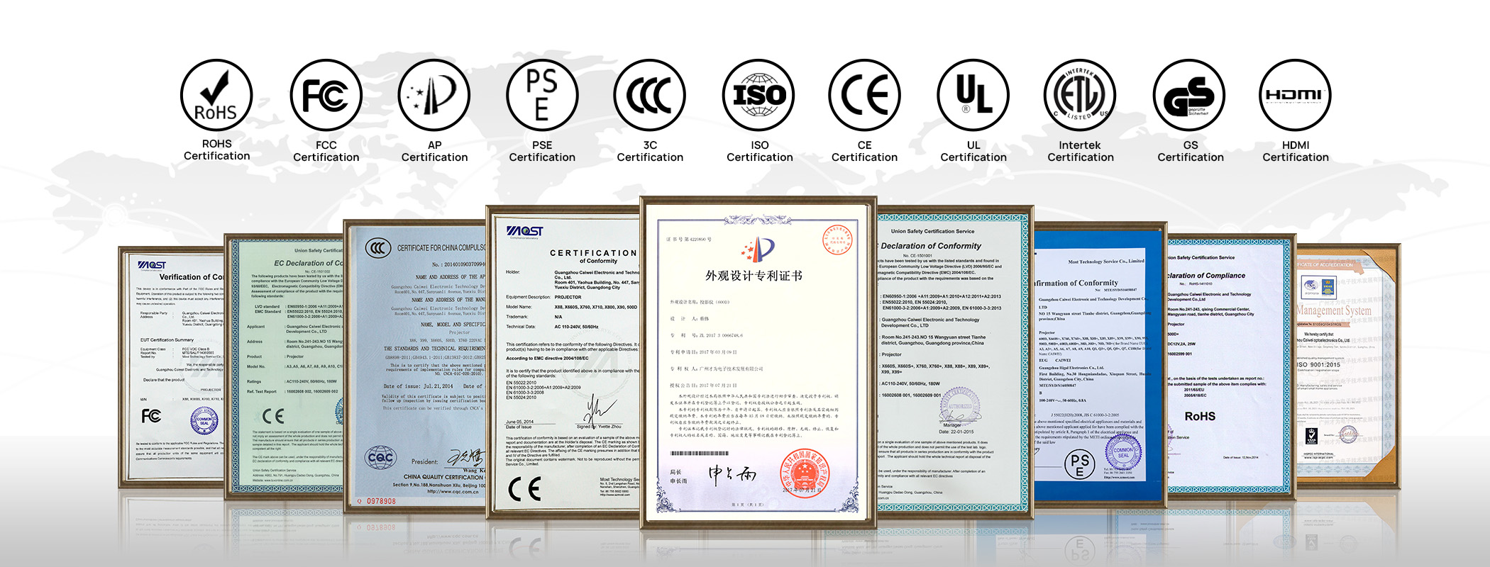 CE, ROHS, FCC, PSE, CCC, ISO9001 Certification